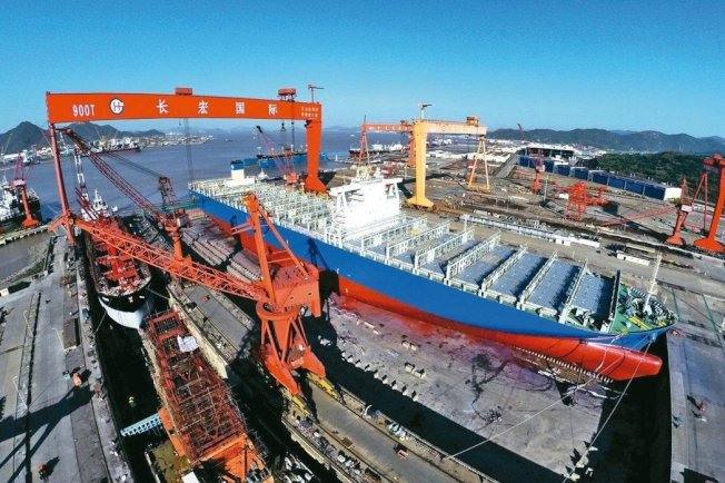 图为中国的造船厂生产情况。