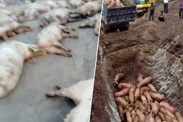 安徽确诊第二宗非洲猪瘟疫情。当局目前已扑杀超过3.8万只生猪。(视频截图/大纪元合成)