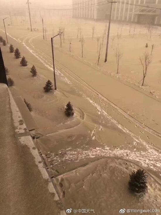 综合媒体报导,受强冷空气影响,11月30日开始,新疆多处出现7级以上强风,克拉玛依市出现沙尘暴,强风夹带沙南下,席卷乌鲁木齐、吉昌等地,而乌鲁木齐市目前是新疆降雪量最大的地区,所以部分区域降雪降尘。