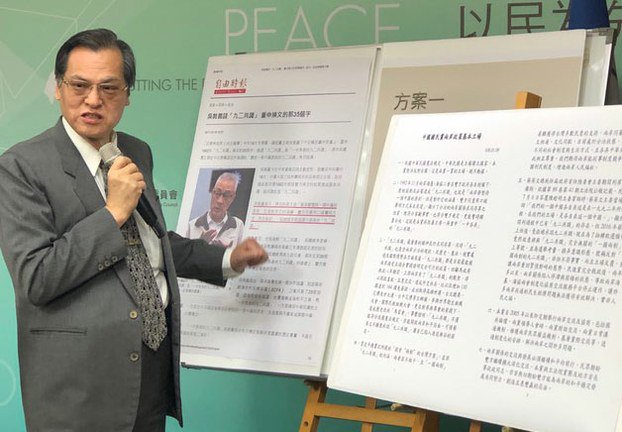 台湾的陆委会主委陈明通10日称国民党35字版的“九二共识”是组合肉。(记者夏小华摄)