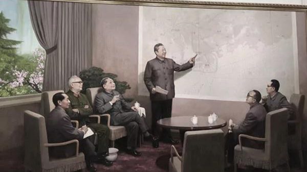 同月,北京美术馆举办纪念改革开放展览,挂出一幅习近平之父习仲勛在地图前”画圈”、介绍深圳特区的油画,邓小平等皆成配角。