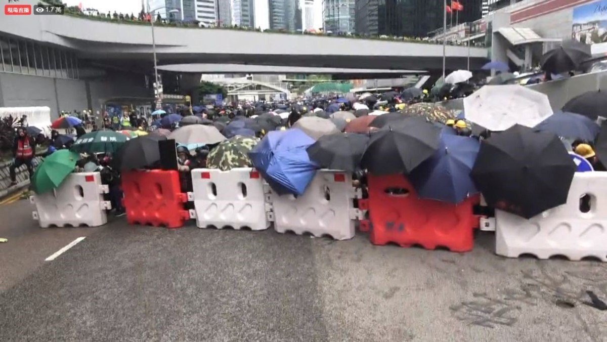 金钟夏悫道及添华道路口,数名警员于水马阵后不断向示威者发射催泪弹,立法会煲底亦放催泪弹。惟夏悫道示威者未有后退,但从添华路口分开左右两批,再迅速以水马及雨伞作掩护,图上前收复路口失地。