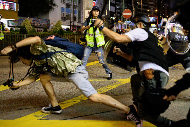 此外,7日晚上11时30分许,防暴警察进入港铁大埔墟站内清场,期间有一名白衣男子遭以警棍殴打倒地不起;现场港警随即采取标准程序,包围并推离在场拍摄的记者至地铁站外、且放下铁栅栏,站内近10名示威者的生死处境不明。