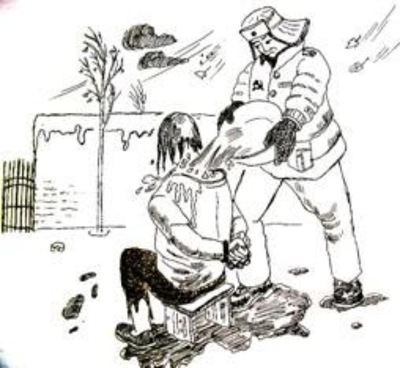 中共酷刑示意图:浇凉水。(明慧网)