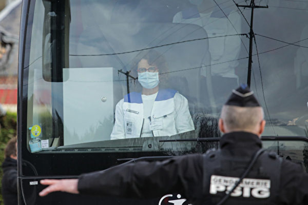 2月21日从中国撤回的34名法国公民抵达诺曼底的一个度假区,准备接受隔离。 (LOU BENOIST/AFP via Getty Images)