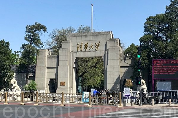 2020年4月22日,清华大学校门封禁,只允许住在其中的家属进入。(大纪元)