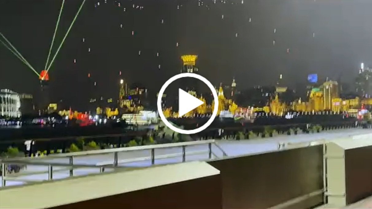 上海外滩数十无人机坠落,砸向豪华游艇、邮轮(图片来源:视频截图)