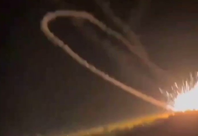 俄军在乌东卢甘斯克州发射一枚防空导弹,没想到导弹竟在空中掉头飞回自家阵地。图:翻摄推特