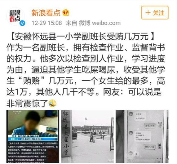 假设我们把他事件中所有人都换成成年人,这是不是一个值得纪委注意的“大老虎”?如何让他们不敢腐不想腐,看来纪律检查工作要从娃娃抓起。
