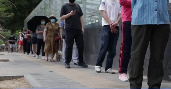 相关话题登上大陆微博热搜榜。疑似中央民族大学学生在微博上发图片表示,学生们在大排长龙做核酸检测。“要补的实验也取消了,一上午啥也没干,光排队做核酸了。”