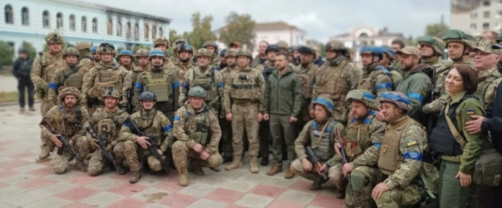 乌克兰总统泽连斯基高调的视察刚被乌克兰军队收复的伊久姆前线。图:翻摄自推特