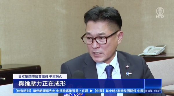美国众议院全票通过《法轮功保护法案》,震撼了国际社会。近日,龟冈市议会议员平本英久表示,美国众议院通过的该法案,某种程度上可将其视为国际社会对中共罪行的“事实认定”,国际社会不会再沉默。