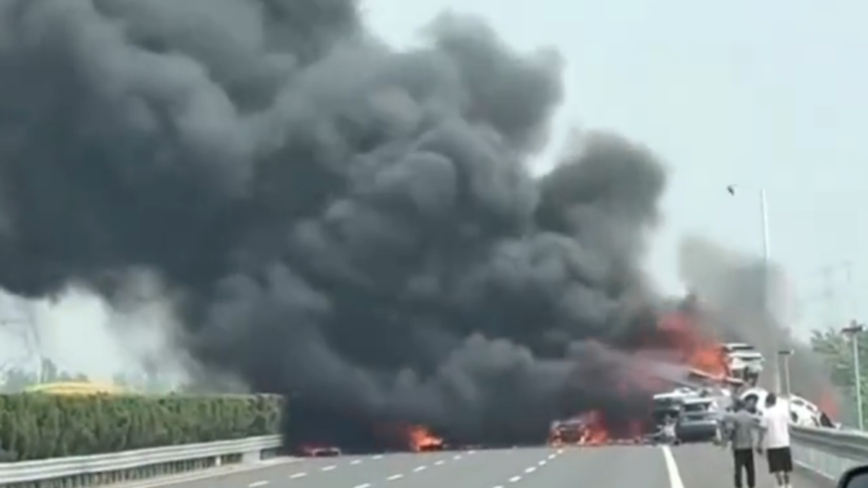 【新唐人北京时间2025年07月17日讯】7月16日14时许,京沪高速公路两辆挂重型货车相撞起火,并伴有爆炸声,多车被大火吞噬,现场相当惨烈。