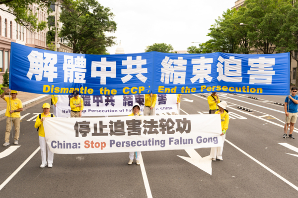 在法轮功反迫害26周年之际,2025年7月17日,来自美国东部地区的部分法轮功学员与支持者在华盛顿DC举行盛大游行,呼吁“解体中共,停止迫害法轮功”。(戴兵/大纪元)