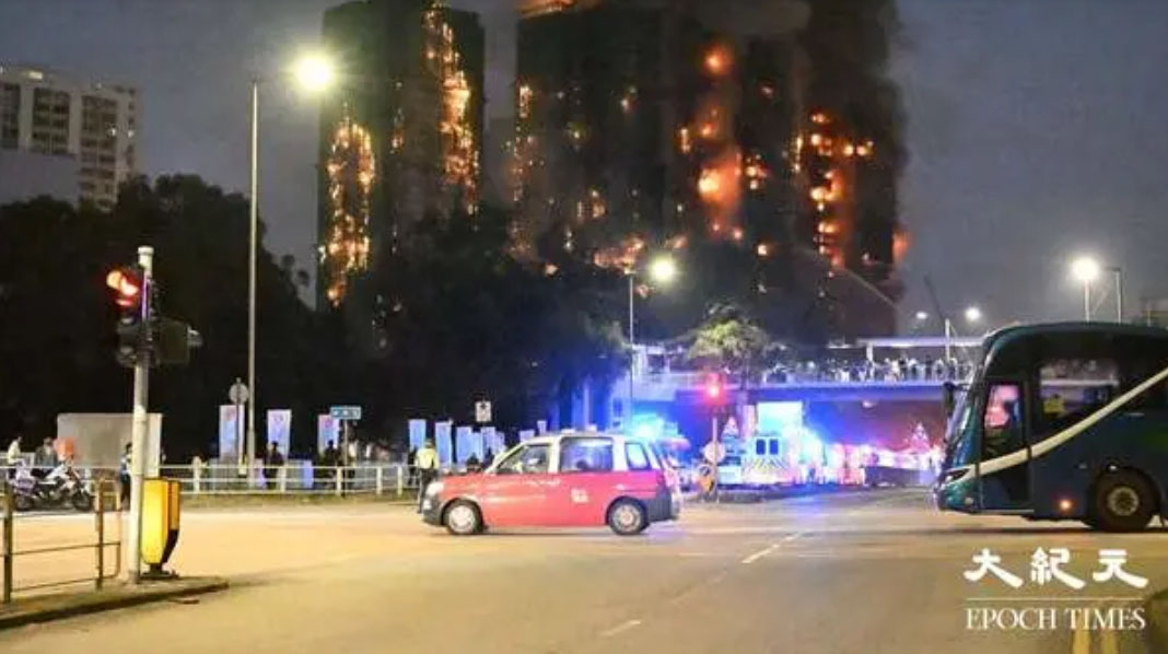 2025年11月26日下午,香港大埔宏福苑发生大火,吞没多栋公寓大厦,已造成13死15伤。(霄龙/大纪元)