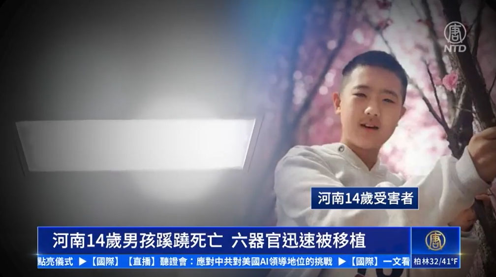 【新唐人北京时间2025年12月03日讯】近日,河南省一位14岁男孩意外坠楼送去医院抢救,被医院判定为脑死亡,家属在医院的要求下签署了器官捐献协议。随后,男孩就被医院宣告死亡,第二天就将其器官移植给了6名患者。据男孩的母亲表示,孩子在推进器官移植手术室前,手还是热的。这意味着男孩在还没被宣告脑死亡前,六名等待器官移植的病患,就已经在等待移植器官了。事件引起外界的巨大质疑,男孩很可能是被死亡的!