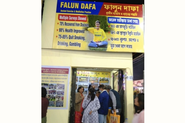 【大纪元2026年02月27日讯】2026年1月22日至2月3日,来自印度加尔各答(Kolkata)的法轮功学员参加了第49届加尔各答国际书展,向人们介绍法轮功并教功,引起参观者、尤其是知识界人士的极大兴趣。人们赞同“真、善、忍”价值观,许多人表示要学炼法轮功。