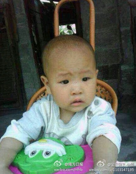 刘闫标,1岁半,10月3日晚上约7点半,在广东惠州博罗县福田镇,福田医院背后河边跟着父亲回家,被两个骑摩托车的陌生男子抢走!失踪时穿绿色衣服、黑色裤子、拖鞋。孩子左手手腕上有黑色胎记。